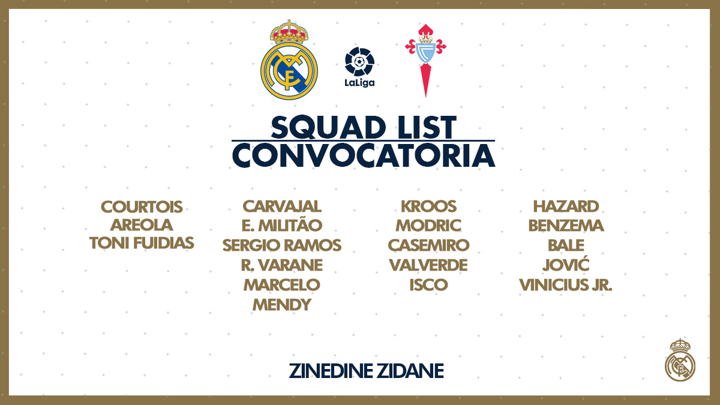 Real Madrid have announced their 19-man squad for their La Liga game to host Celta as Hazard finally returns.