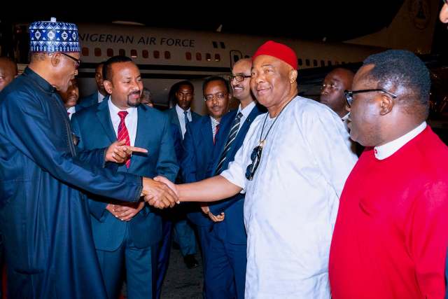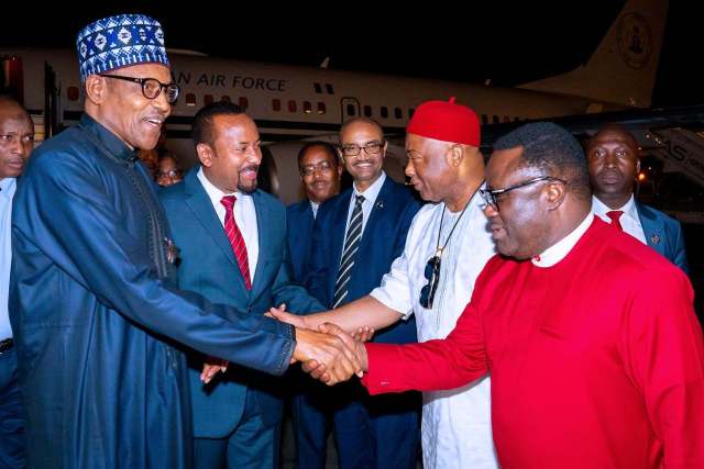 President Muhammadu Buhari on Friday night arrived Addis-Ababa Ethiopia with Hope Uzodinma, the executive governor of Imo State, and Prof. Ben Ayade, governor of Cross River State ahead of 33rd Ordinary Session of the Heads of State and Government of the African Union (AU).