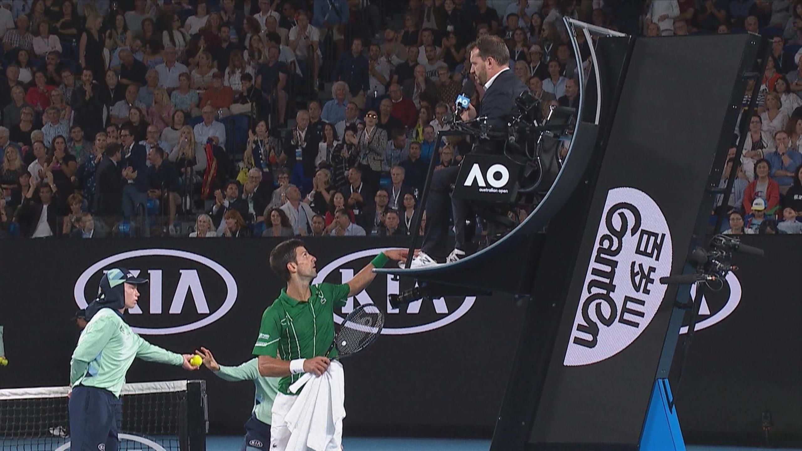Novak Djokovic took aim at umpire Damien Dumusois after the official had penalised the seven-time Australian Open winner for a time violation on serve.