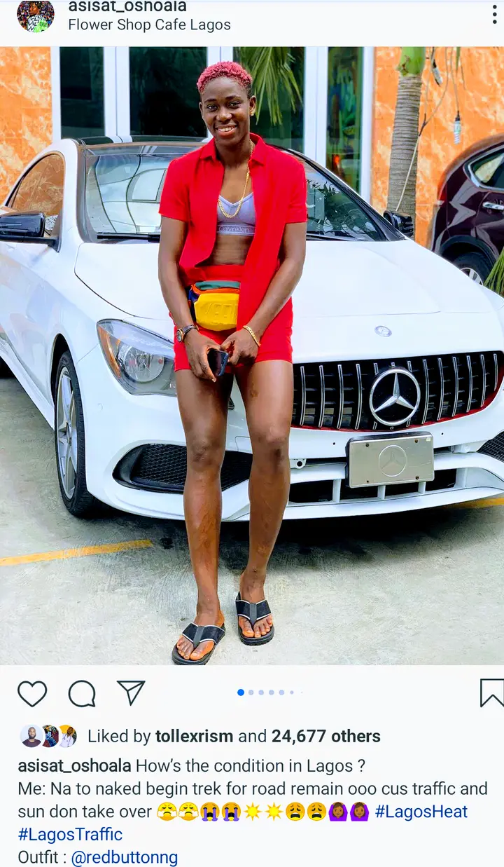 "Me: Na to naked begin trek for road remain ooo cus traffic and sun don take over 😤😤😭😭☀️☀️😩😩🙆🏾♀️🙆🏾♀️ #LagosHeat #LagosTraffic".