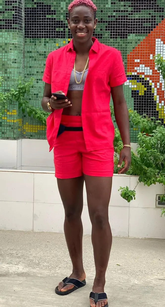 Super Falcons Forward, Assisat Oshoala has shared stunning pictures of her self while reacting to the sunny weather condition in Lagos.