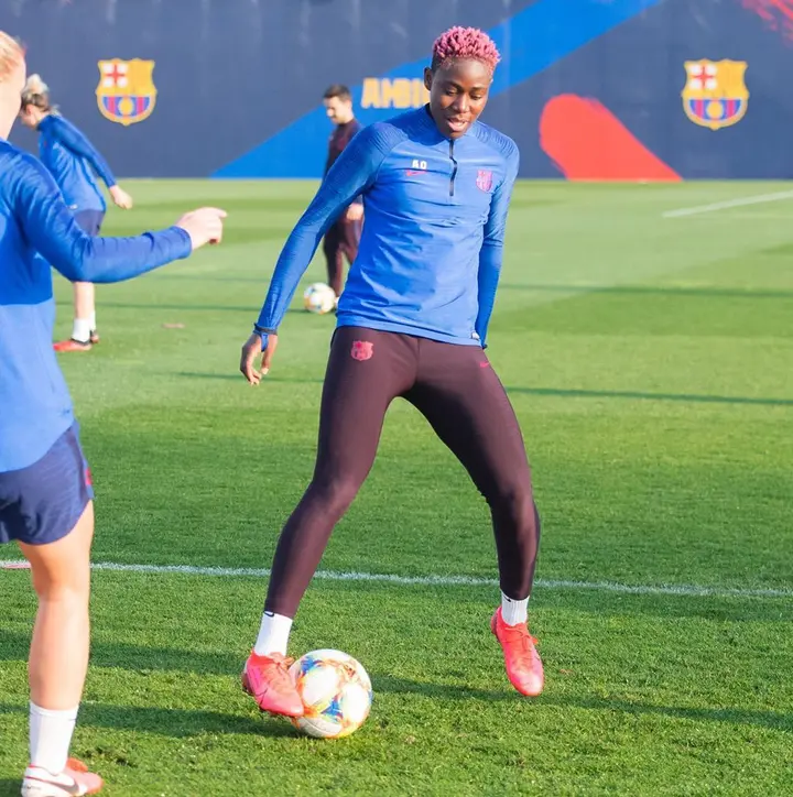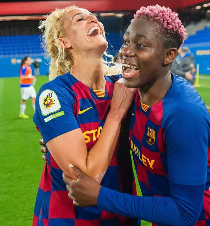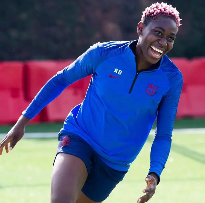 Barcelona announced in May 2019 Oshoala's full transfer to the club and extension until 2022 after previously being on loan from Chinese club Dalian Quanjian F.C.