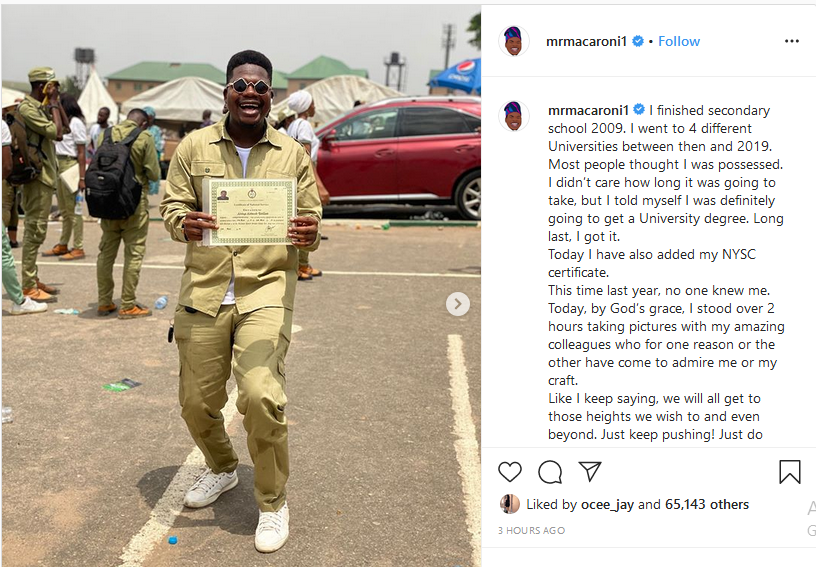 Social media comedian, Debo Adebayo popularly known as Mr Macaroni has opened up on what he went through before he could become a university graduate