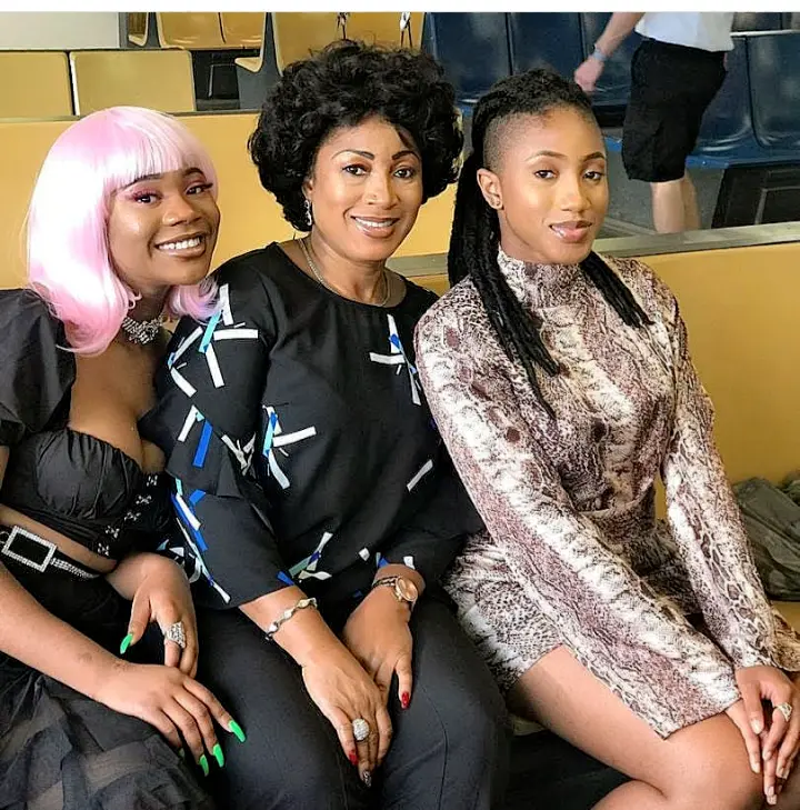 The DJ shared the adorable picture and captioned it queens. His wife and daughter are sitted looking pretty in the picture. He's daughters are very beautiful and all grown up.