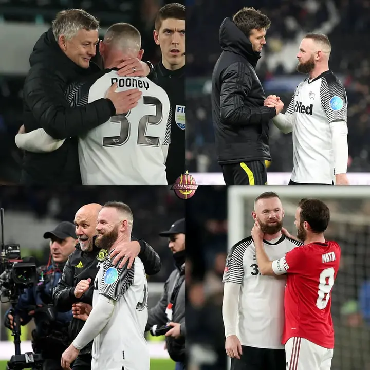 Rooney was seen greeting Manchester united coaching team, Ole solskjaer and his former team mate Michael carrick.