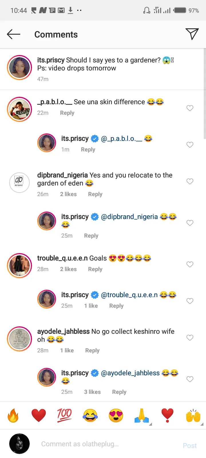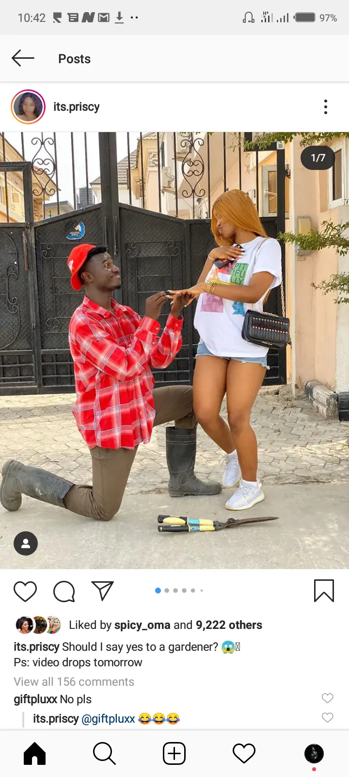 Daughter to popular Nollywood actress, Iyabo Ojo, Priscilla Ojo has asked her followers if she should say yes to a gardner.