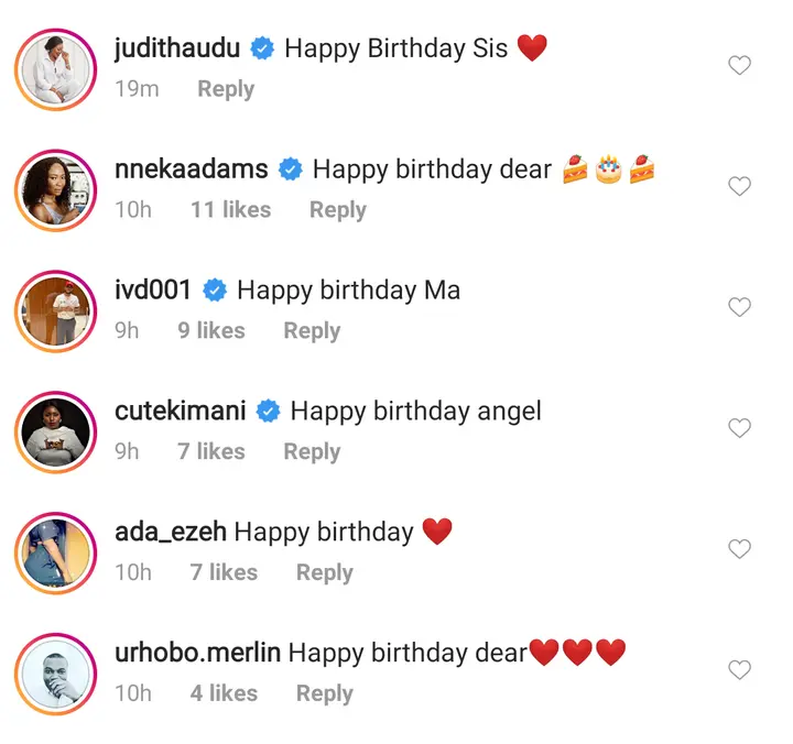 Comments sighted and shared below include that of actress Moyo Lawal, who simply wrote, "Happy birthday puchu".