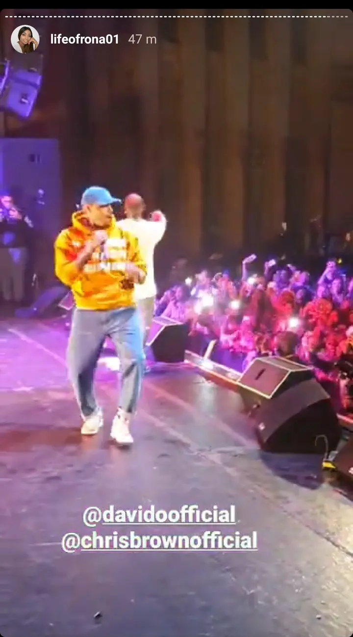 At San Francisco, Davido had the opportunity to meet American veteran singer, Chris Brown, apart from having the opportunity to snap pictures with him alongside his sister Sharon, the duo also sang and entertained their audience together on stage.