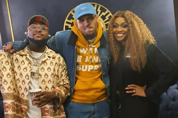 Nigerian popular music artist, Davido and his sister, Sharon Ademefun (Adeleke) met with American popular artist, Chris Brown