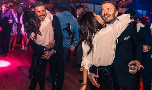 The fashion designer could be seen with her arms wrapped around her husband David Beckham, 44, in a cosy embrace on the dance floor, in snaps which were posted online.