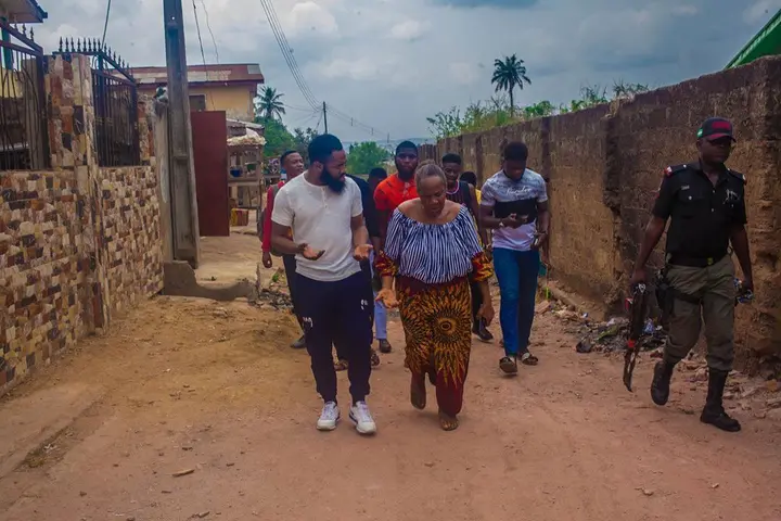 Nigerian Actor and stand-up comedian Oluwatoyin Bayegun popularly called Woli Arole returning from a tour at the Adeleke University paid a surprise visit to his Mother in his home town, Apata in Ibadan, Oyo state.