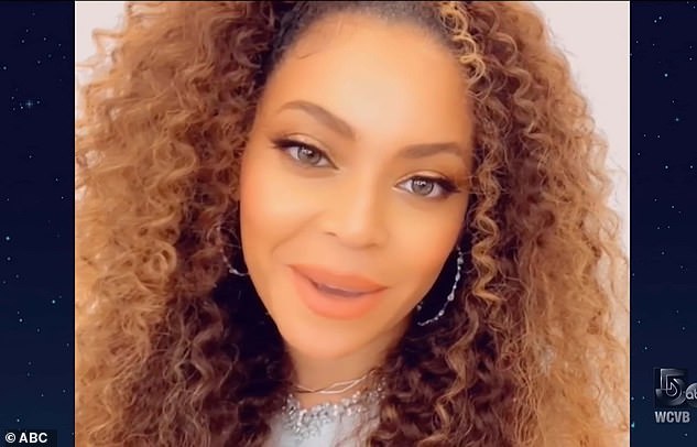'Please hold onto your families tight. Please be safe, don't give up hope. We're gonna get through this, I promise. God bless you,' Beyonce said after the song before she blew a kiss to the camera.