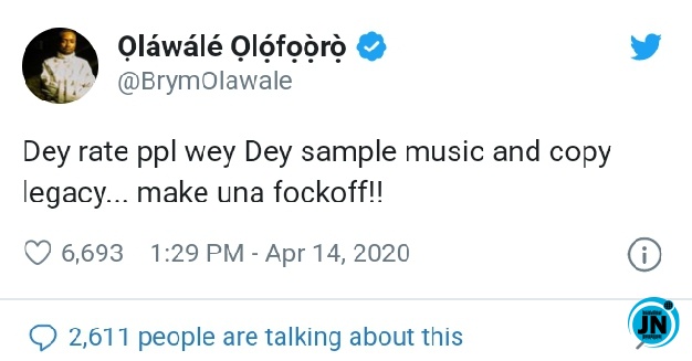 Brymo fired back:“F**king liar… !! Yellow is my best work so far. out-streamed all of my catalog in two weeks…”