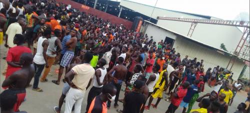 In a video of the incident making the rounds on the Internet, the angry workers could be seen protesting their forced ‘detention’ inside the Chinese factory located at the Ibese area of Ogun State by destroying items within the company.