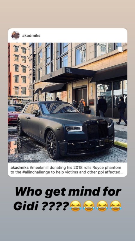 Recall that the American rapper, Meek Mill donated his 2018 Rolls Royce Phantom worth millions of dollars to help feed millions of underprivileged around the world during the coronavirus pandemic.