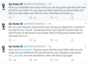 Singer Jaywon has taken to his Twitter page to drag producer Master Kraft following a producer’s face off last night.