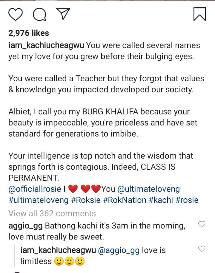 Kachi seems to have developed sleepless night resulting from the love of Rosie as he posted a beautiful picture of Rosie at 3 am .