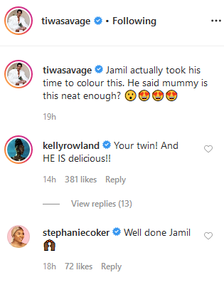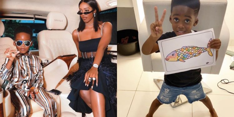 Taking to Instagram, Tiwa savage shared a picture of a beautiful Fish her son Jamil has drawn.