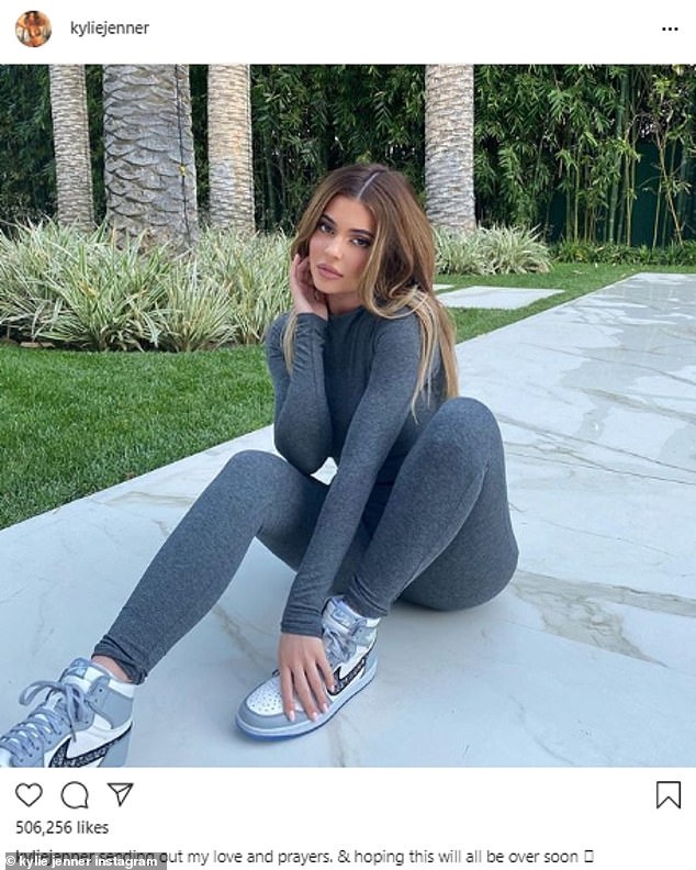 ‘Sending out my love and prayers & hoping this will all be over soon,’ the Keeping Up With The Kardashians star said as she referred to the coronavirus pandemic.
