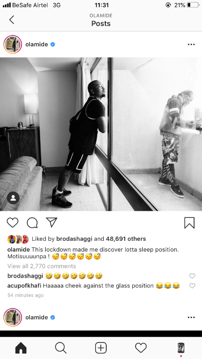Popular rapper, Olamide has taken to Instagram to reveal what he has learnt during this lockdown period.See what Badoo said:
