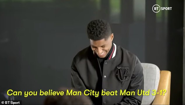 Rashford immediately laughed and responded: 'Well we beat you 3-1 before as well!'