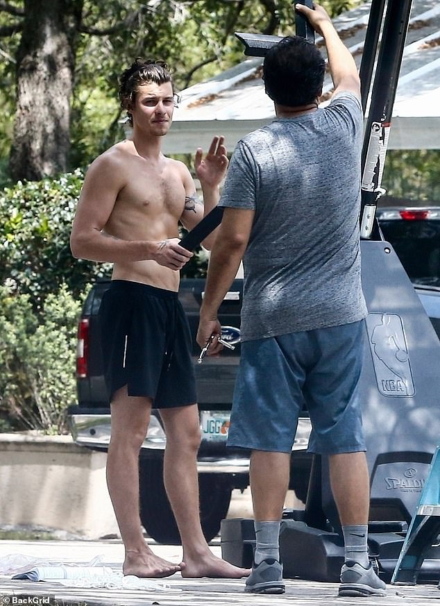 The shirtless singer, 21, and his girlfriend's dad used their extra time to assemble a basketball hoop in the driveway of the Cabello's Miami residence.