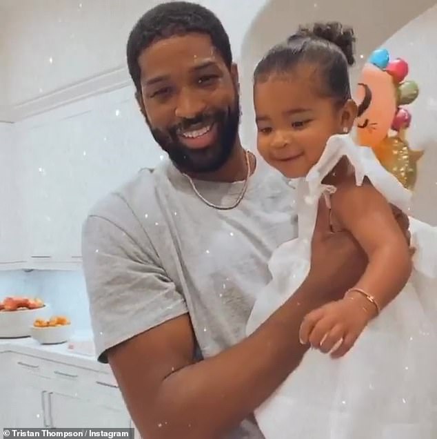 Tristan Thompson cradled his daughter True as she blew out the candles on her second birthday cake this Easter.