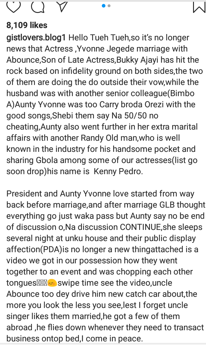 Recall that Yvonne Jegede marriage to the son of late Nollywood icon, Bukki Ajayi, Abounce crashed over alleged infidelity last year.