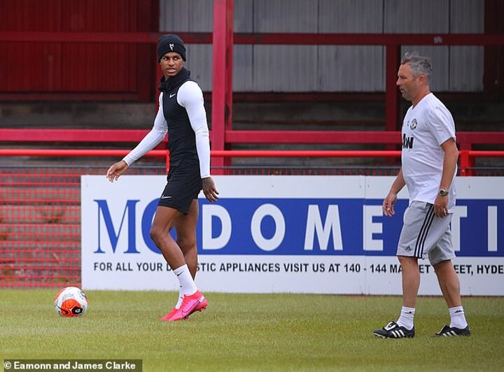 Marcus Rashford trained with a member of Manchester United staff at Altrincham's Moss Lane ground on Sunday. Rashford's friend and former teammate Ro-Shaun Williams, now at League One Shrewsbury Town, was also training at Moss Lane. The forward has been stepping up his fitness after suffering a double stress fracture to his back in January.
