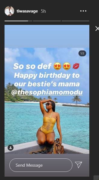 Nigerian singer Tiwa Savage who is a close pal to Sophia Momodu showed up with her birthday shout out.