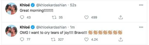 "OMG I want to cry tears of joy!!!! Bravo!!!" the mum-of-one shared with her 28.6 million Twitter followers.