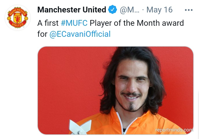 Meanwhile, the fans of Manchester United have voted the Uruguay international their best player for the month of April.