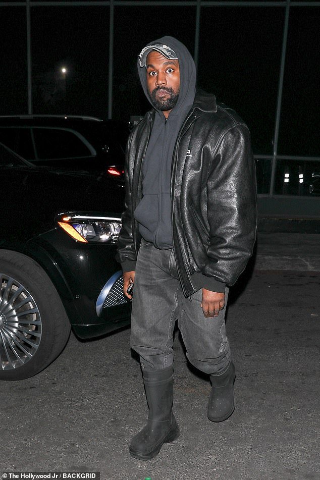 Amercian rapper Kanye West was pictured heading out in Beverley Hills on Saturday night. The father of four donned an all-black ensemble, with a black hoodie and black jeans.The 45 years old rapper sported in his black leather jacket over the top and strolled along the LA streets in black boots.