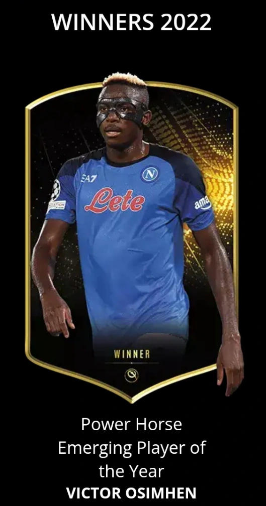 Nigerian striker, Victor Osimhen won the Power Horse Emerging player of the year.