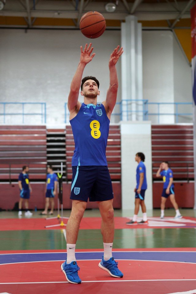 West Ham captain Declan Rice shows his skills as he took part in some shooting practice.
