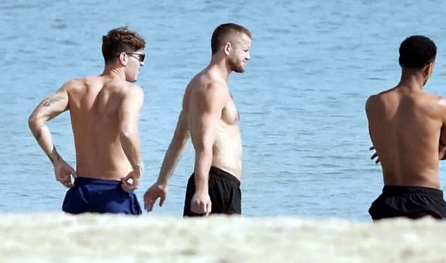 In the mean time on Monday evening, Harry Maguire, John Stones and Jude Bellingham were among those spotted strolling to the ocean side by Channel 5, with a portion of the stars taking their tops off and partaking in a break.