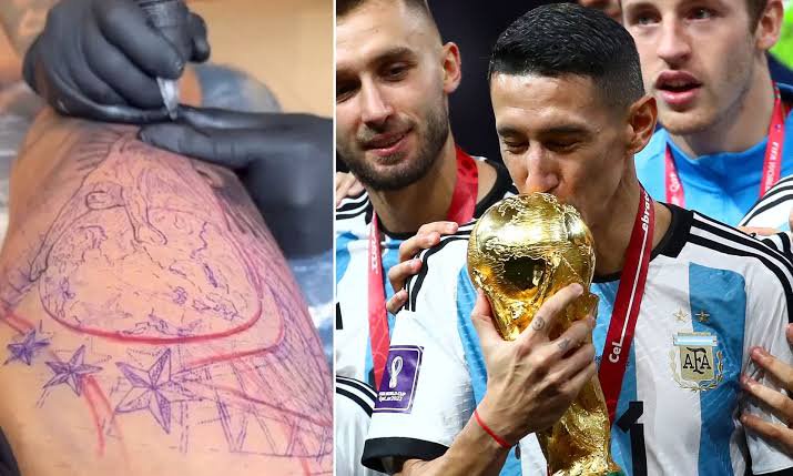 To commemorate his part in leading Argentina to World Cup triumph in Qatar in 2022, Angel Di Maria got a big tattoo.