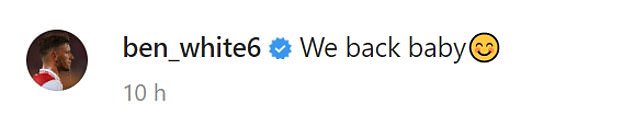 After practicing with Arsenal in Dubai, White simply posted, "We back baby," on social media. For the first time since leaving England's World Cup headquarters, Ben White has spoken out.