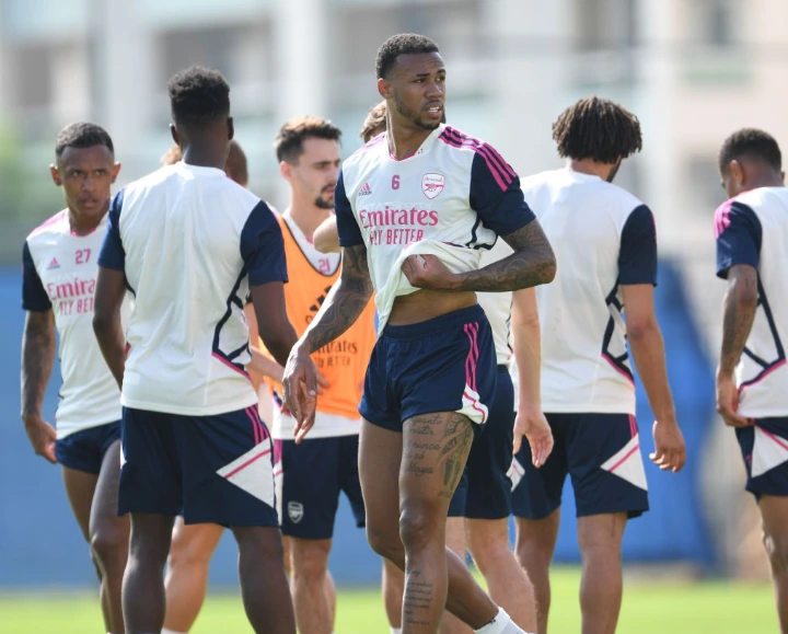 Martin Odegaard, Mohamed Elneny, Rob Holding, Kieran Tierney, Gabriel, Marquinhos, Eddie Nketiah, and Fabio Vieira were among the players seen working out with the Gunners on Monday.