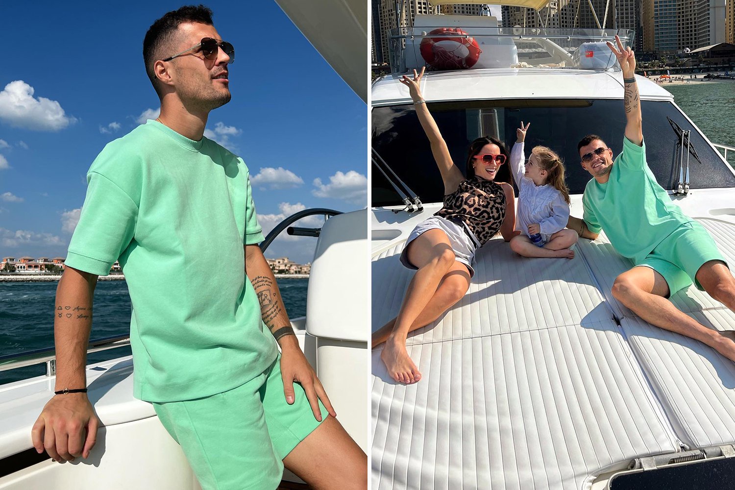 After Switzerland was eliminated from the World Cup, ARSENAL midfielder Granit Xhaka uploaded images of himself unwinding with his family aboard a boat in Dubai.