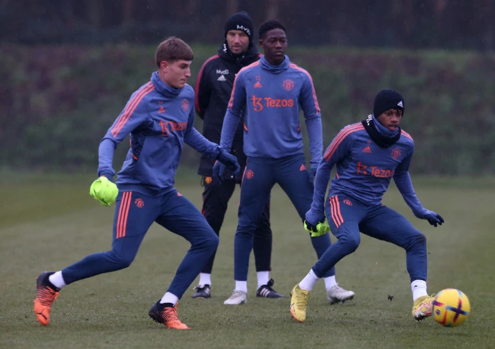 Reportminds Blog is aware that Anthony Martia, Christian Eriksen, Tyrell Malacia, Bruno Fernandes, David de Gea, Antony Santos, Anthony Elanga, Donny van de Beek, Scott McTominay, and Luke Shaw were among the players who were present at the Red Devils' Thursday training session.