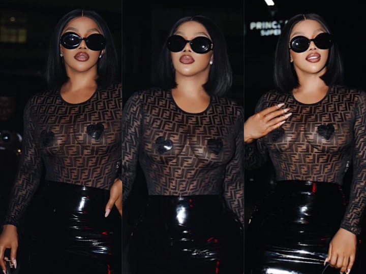 Toke Makinwa was seen heading out for the night as she rocked new see-through outfit.