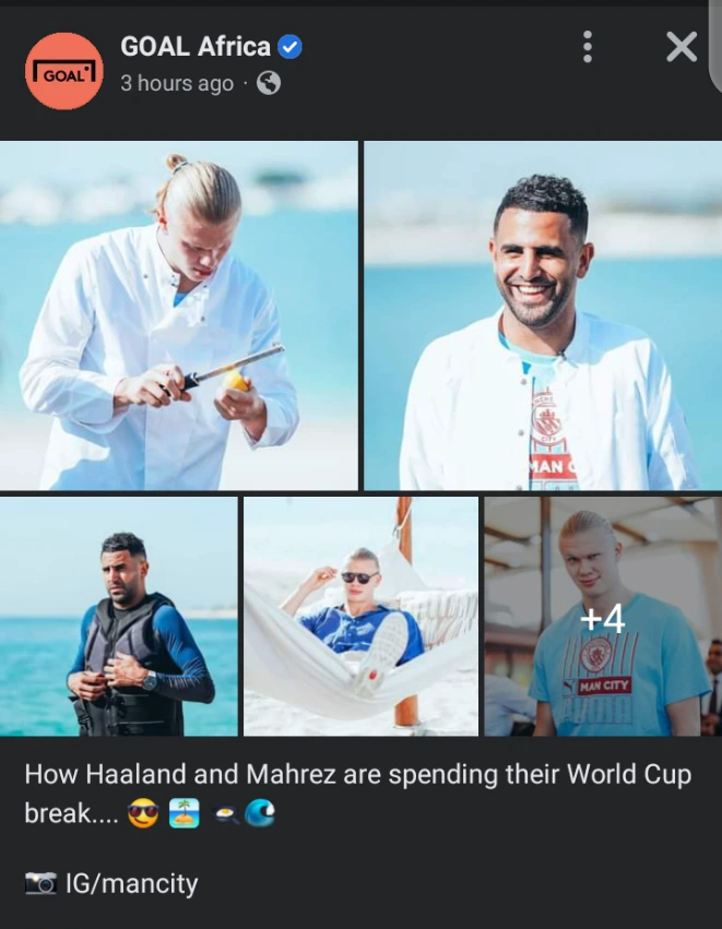 Meanwhile popular sport media outlet, Goal has shared some amazing photos of Manchester City's Mahrez and Haaland on holiday.