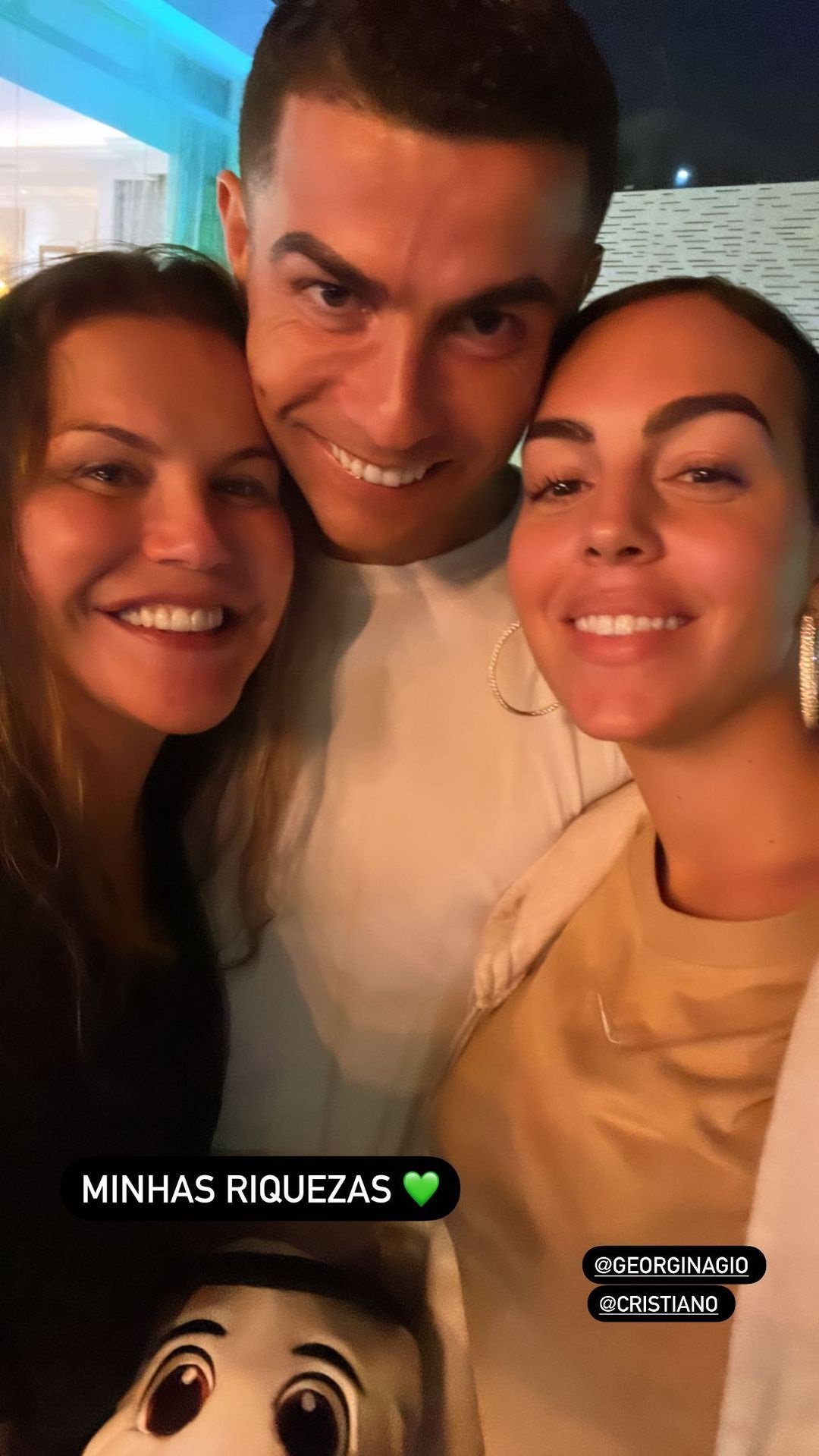 In several photos shared on social media space, Cristiano Ronaldo posed with his wife Georgina Rodriguez and his sister Katia Aveiro.
