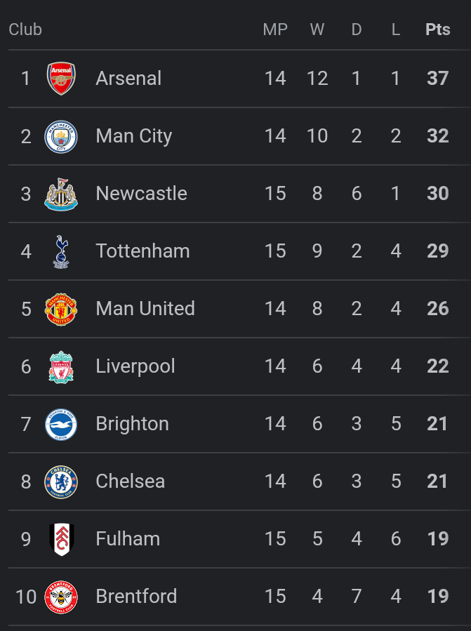 Arsenal who are the leading the standings with 37 points will want to continue with their fine form displayed in the first half of the campaign.