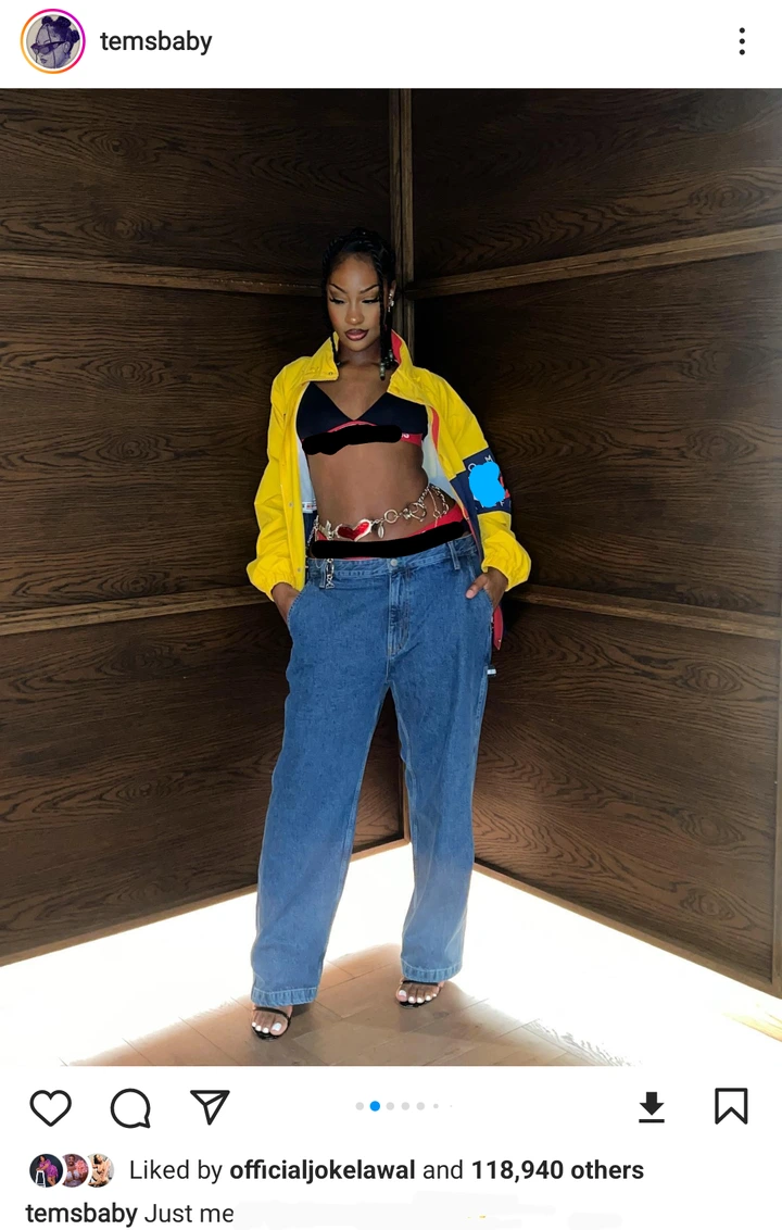 Popular Tems, a female musician from Nigeria, flaunted her attractiveness to her admirers in a recent Instagram photo. She enjoys showcasing her attractiveness in various costumes on social media, and this time she did so by making an appearance in a pretty one.
