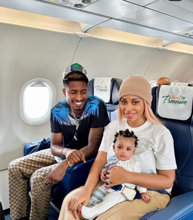 Peter Olayinka, a star for the Super Eagles, and his wife Yetunde Barnabas were seen enjoying fun aboard a private plane.
