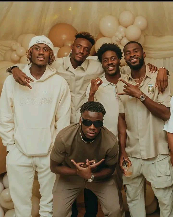Former Chelsea players Tammy Abraham, Trevor Chalobah, Ola Aina, Ike Ugbo, and Fikayo Tomori were spotted taking a pose together.