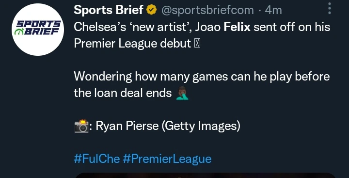 Chelsea new, signing Joao Felix was sent off in his debut game for the Blues against Fulham.