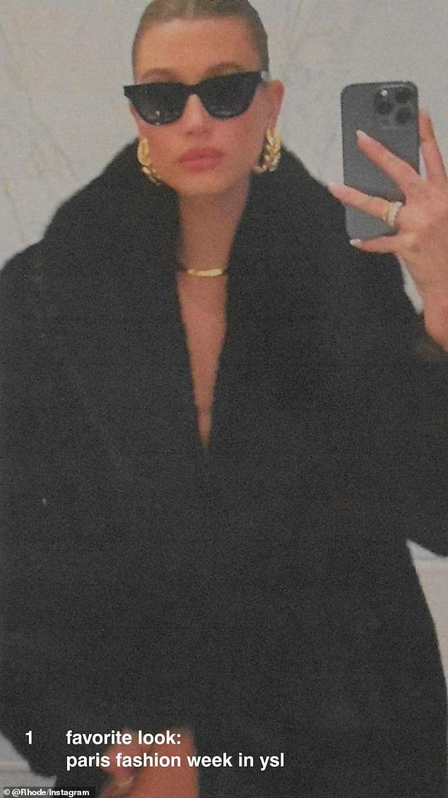 Hailey began by revealing to her followers her most beloved outfit of the year, a Yves Saint Laurent ensemble she wore to Paris Fashion Week.